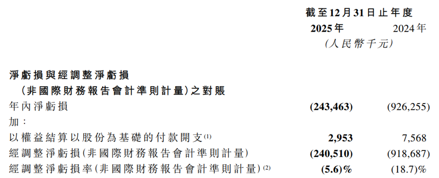 在此之前,2023年集团营收尚超53亿元,两年间累计缩水近20%。同期,年内净亏损2.43亿元,较2024年的9.26亿元大幅收窄73.7%;经调整净亏损2.41亿元,经调整净亏损率为5.6%,较2024年的18.7%显著改善。