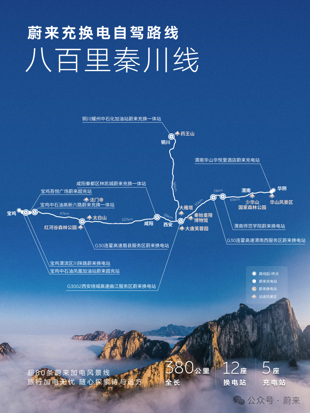 当春意漫进秦川,秦岭焕新,渭水含情,千年古都与雄奇山川一同苏醒。天下名塔、秦岭主峰、长安繁花、华山云涛,串联成一条兼具底蕴与野趣的春日路线。穿行五城之间,目之所及皆是风光,心之所向尽是安宁。📌“路线推荐”八百里秦川线,全长380km,沿途布局17座充换电站。Day1:宝鸡春风入陈仓,古韵伴山光。走进千年古建法门寺,观塔影巍峨,赏地宫传世珍宝;远眺太白山麓,春雪与山花相映,一脚踏进关中最空灵的春日画卷。Day2:咸阳渭水之畔春意浓,古都风华焕新颜。徜徉咸阳湖景区,碧波荡漾,杨柳依依,亭台楼阁倒映春水,感受大秦故都的温润与灵动。Day3:铜川药香漫山野,古柏映春光。登临药王山寻迹文脉,山间新绿遍野,山花点点,在清幽山野与千年古迹间,独享一份静谧悠然的春日闲情。Day4:西安春风拂长安,一梦回盛唐。漫步大唐芙蓉园,亭台楼阁映繁花,牡丹海棠次第绽放,一步一景皆是唐风古韵,沉浸式感受古都的浪漫与繁华。Day5:渭南西岳迎春风,奇险藏温柔。登临华山之巅,看云雾绕奇峰,山花缀险峰,日出云海壮阔如画,在山河雄奇间,领略秦川大地的磅礴春意。🔥“必打卡体验”🏯法门寺:千年古建藏春色,繁花映塔影悠悠。春风绕阁,庭院清幽,既可近距离观赏地宫出土的稀世奇珍,又能在雕梁画栋与繁花之间,感受跨越千年的历史厚重与人文底蕴。⛰️太白山森林公园:秦岭主峰的春日秘境,雪山、云海、山花同框。山间杜鹃、野樱次第盛开,高山草甸渐次返青,登顶可见残雪与春光共生,在雄奇山水间尽览秦川壮阔。🌼大唐芙蓉园:盛唐春色独一处,满园繁花映唐风。牡丹雍容、海棠娇艳,曲水回廊、亭台楼阁与春色相融,白日赏满园芳华,入夜观灯火阑珊,一秒梦回锦绣长安。🌄华山:天下奇险的春日限定浪漫。山花点缀险峰峻岭,云雾缠绕青山绝壁,登峰远眺秦川沃野,看日出云海波澜壮阔,于奇险之中,邂逅山河与春光的极致碰撞。“加电风景线”是蔚来在2020年发起的能源布局项目:在基础设施不完善,但极具向往感的目的地部署充换电设施,满足车主加电需求,让油车能去的地方电车也能去,助力大家尽情探索旅程的旖旎风光和灿烂文明。截至目前,我们已经贯通了超80条蔚来“加电风景线”。#蔚来 #蔚来换电去哪都方便 #自驾旅行首选换电 #蔚来ES9 #蔚来ES8 #蔚来ET5 #蔚来ET5T #蔚来ES6 #蔚来EC6 #蔚来ET9 点击即刻了解蔚来全系车型