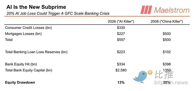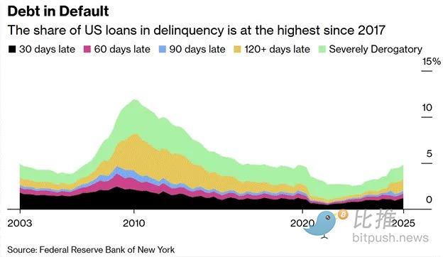 简而言之,AI 代理引发的通缩崩盘在严重程度上足以与 2008 年美国次贷危机并肩。消费者信贷违约率已经在上升,而大规模裁员潮甚至还没真正开始。