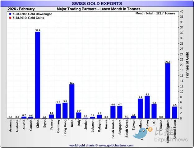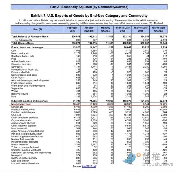非货币性黄金已连续 5 个月中有 4 个月成为美国最大的出口项目,同比增长 342%。