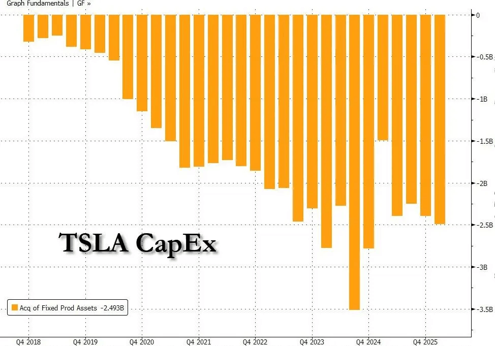 公司CFO Vaibhav Taneja在会上披露,特斯拉2026年全年资本支出预计超过250亿美元。