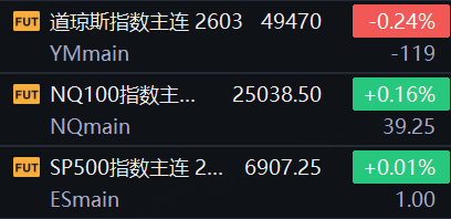 2月5日,美股三大股指期貨升跌不一,截止發稿,道指期貨跌0.24%,納指期貨漲0.16%,標普500指數期貨漲0.01%。