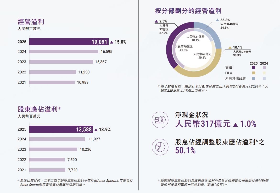 安踏體育 :2025年營收人民幣802.19億元,按年增長13.3%;股東應占溢利135.88億元,按年增長13.9%。