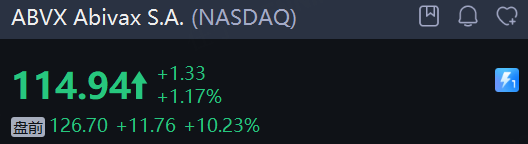 Abivax S.A. 盤前漲超10%,將於12月22日開盤前被納入納斯達克生物技術指數。