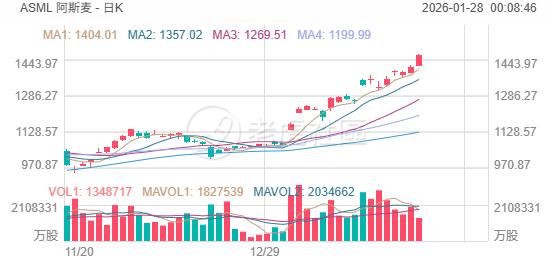 周二,阿斯麥盤中升逾3%,創歷史新高,年內升逾36%,總市值超過5600億美元。同時, 應用材料 漲5%, 英特爾 漲4%, 台積電 漲1.9%, 英偉達 、 ARM Holdings 漲1.4%。