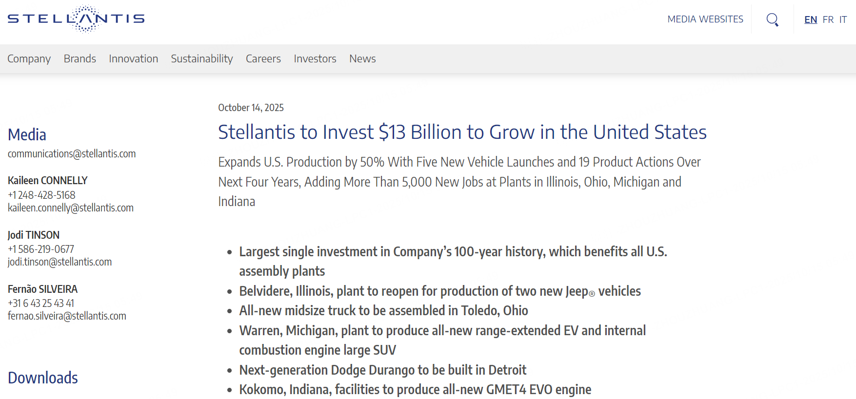 Stellantis 首席執行官兼北美首席運營官 Antonio Filosa 表示:「此次在美國的投資是公司歷史上最大的一筆投資,它將推動我們的增長,增強我們的製造業務,並為我們的家鄉創造更多就業機會。值此下一個百年之際,我們將以客戶為中心,不斷擴展我們的汽車產品線,讓客戶能夠自由選擇他們想要和喜愛的產品。」