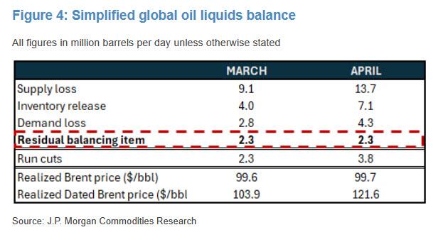 油市現在最詭異的地方,賬算不平:供應被拿走了一大截,庫存在快速萎縮,需求也在下滑,但價格的反應不像一個正在被迫清算的市場。摩根大通的結論很直接——這套全球原油供需賬,哪裏不對勁。