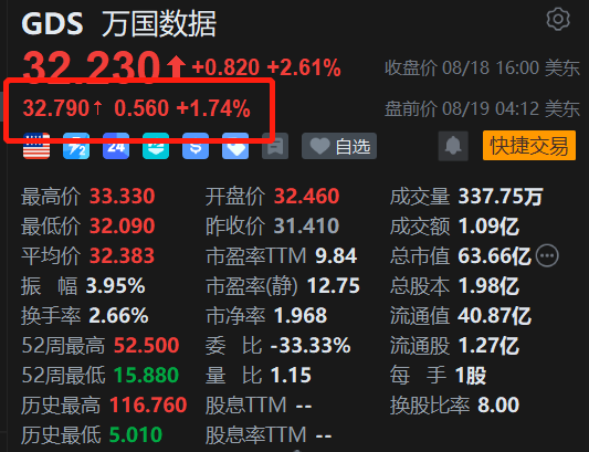 美股異動|萬國數據盤前漲約2% 機構看好+明日盤前放榜