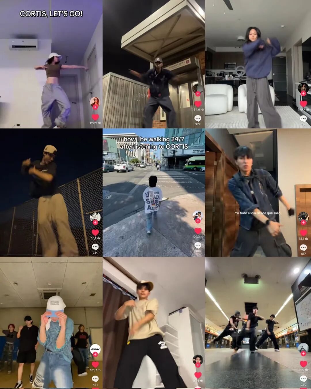 因此,歌曲越來越短、重複性越來越強的洗腦旋律與歌詞、簡單易上手的編舞也逐漸成為流行。比如在發行一個月後,CORTIS的先行曲《GO!》仍然在TiikTok爆紅的舞蹈Challenge便是如此。在「GO,GO,GO」的節奏驅使下,該舞蹈動作也被拆解為適配各類場景的抽象表達。