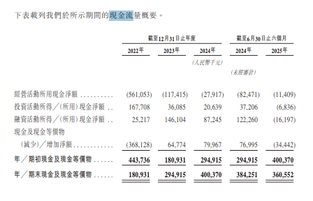 不過,藍鯨科技記者查閱招股書資料發現,過去四年該公司一直處於虧損狀態,直至2025年上半年該公司運營利潤才首次轉正,且盈利的實現一定程度上依賴於研發削減與人員優化。與此同時,該公司經營性現金流淨額也持續為負。