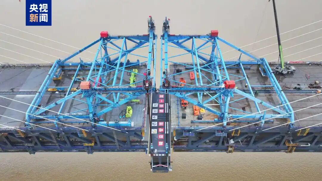 為此,建設團隊設計研發了國內公路用最大的QMD1500t橋面吊機,其智能控制與監控系統可實時監測,提升重量、吊裝高度、承載部位應力等關鍵數據。這臺「空中大力神」能將近1300噸重的巨型鋼桁梁段,在高空實現誤差不超過3毫米的精準對接。
