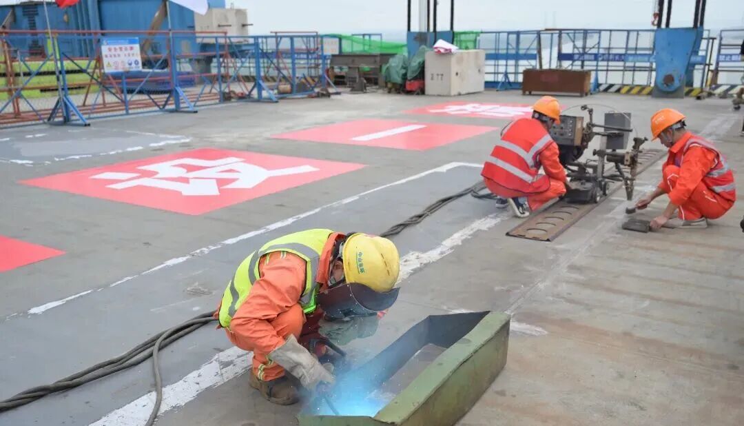 31日上午11點30分,香山大橋的上橋面,建築工人正操作着埋弧焊機,對着香山大橋最後一片鋼箱梁的焊縫進行焊接。隨着合龍段最後一米焊縫焊接完成,香山大橋實現合龍。接下來,香山大橋將轉入橋面鋪裝和橋樑附屬設施的安裝施工。