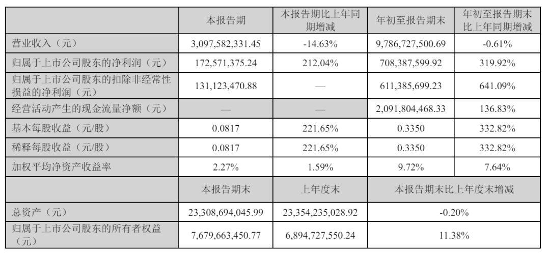 此外,公司持續加強成本管控,優化財務結構,前三季度銷售費用、管理費用和財務費用均同比下降。