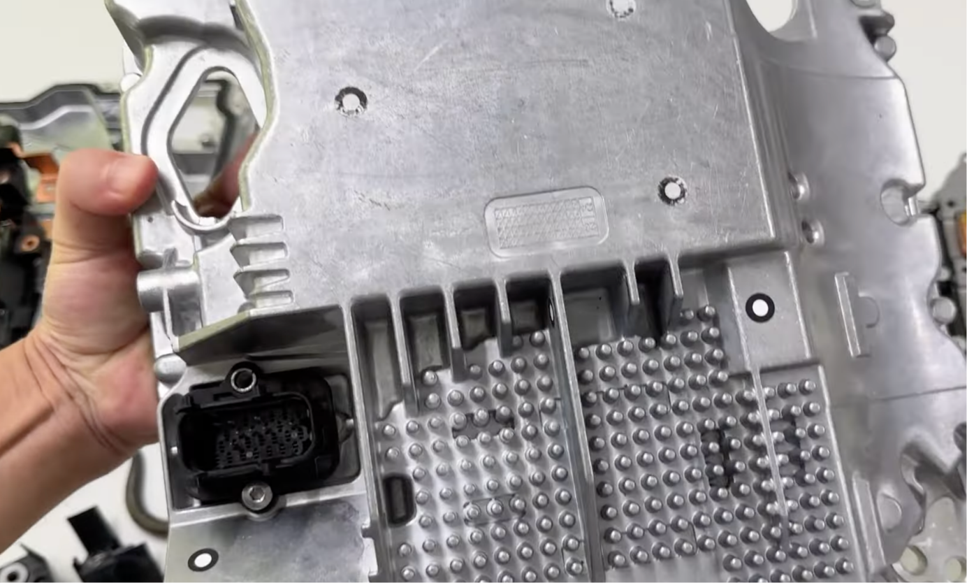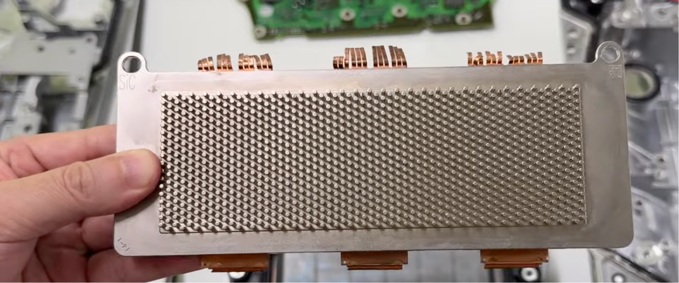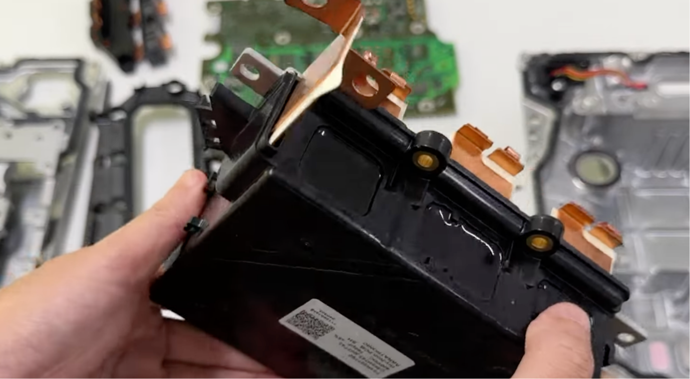 功率器件:搭載3個2 in 1碳化硅(SiC)模塊,模塊體積薄,採用緊湊式封裝,表面印有「UAES」(聯合汽車電子)標識。