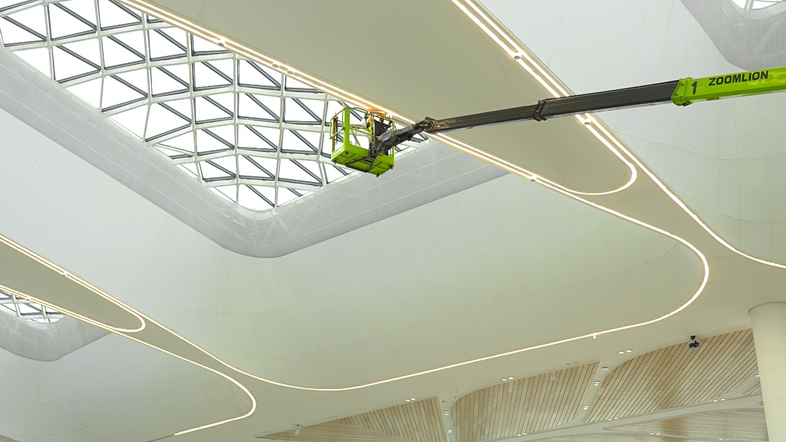 面對弧形頂棚等複雜結構帶來的安裝挑戰,佛山照明派出專業團隊駐場指導,使用定製安裝支架進行精密角度校準,將毫米級安裝難題轉化為高效可控的施工流程。項目組與設計、建築單位緊密協同,通過BIM等先進技術進行多輪校驗,確保照明方案精準實施。