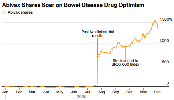 與此同時,投資者們紛紛搶購該股票,尤其是因為 Abivax 被吹捧為可能的收購目標。上個月,Truist Securities 稱該公司是「具有戰略吸引力的潛在收購寵兒」。與此同時,高盛最近將 Abivax 列入其最受對沖基金青睞的股票名單。
