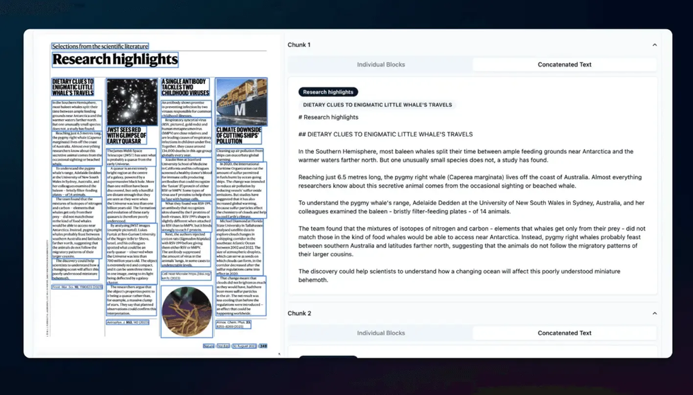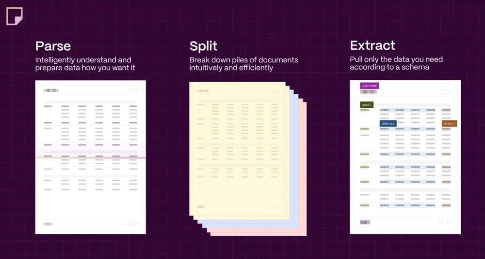 Split API(拆分):將長文檔(如1000頁PDF)智能拆分為語義上有意義的「塊」,為下游RAG應用優化上下文。
