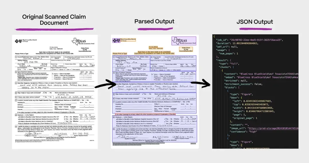 Parse API(解析):作為Reducto的基礎,Parse API將複雜文檔(如PDF、圖像、表格)轉換為包含文本、表格、圖形及佈局信息的結構化輸出。