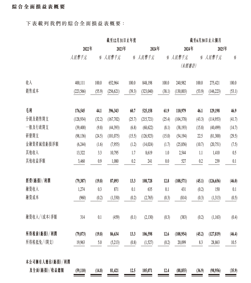 2025年上半年,公司實現收入為2.75億元,同比增長14.29%;公司擁有人應占(虧損)/利潤及全面(虧損)/收益總額為-9895.6萬元,上年同期為-8885.5萬元。