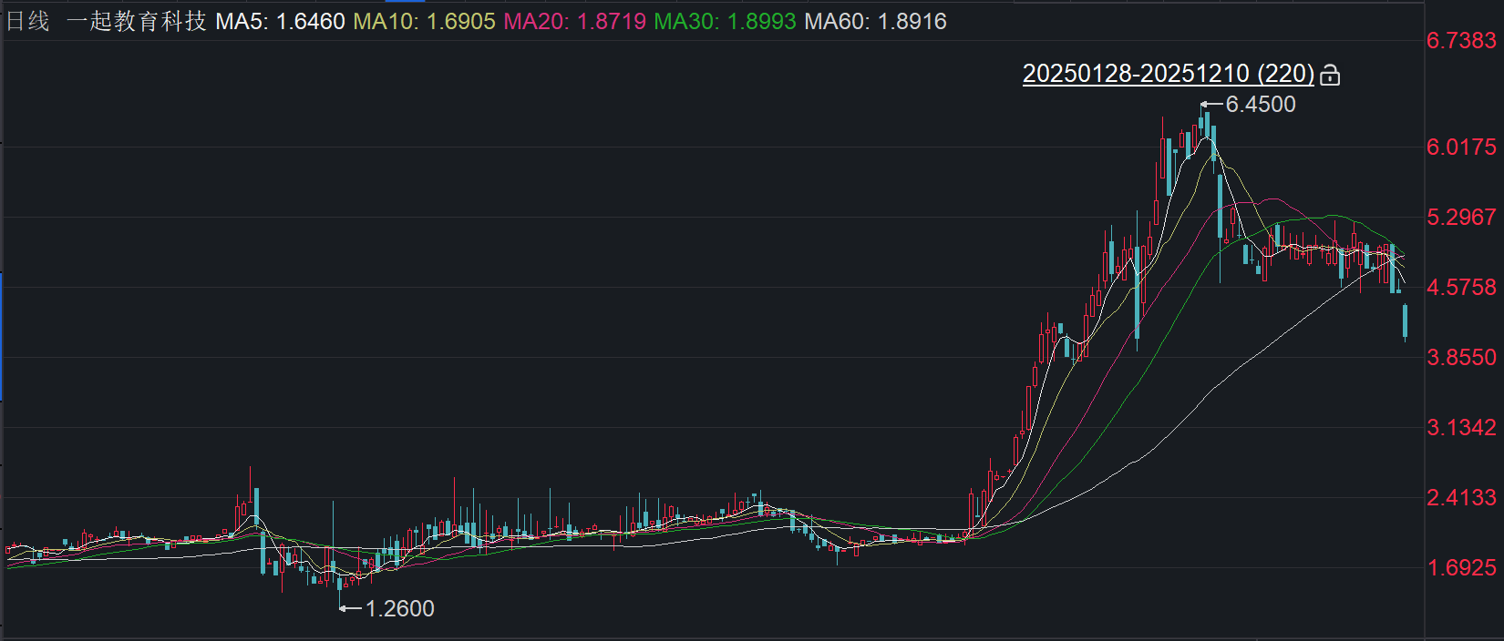 二級市場上,截至發稿,一起教育科技報4.05美元/股,盤前交易上漲7.16%,前一個交易日下跌10%,總市值約3584.94萬美元,今年來公司股價累計上漲約155%。