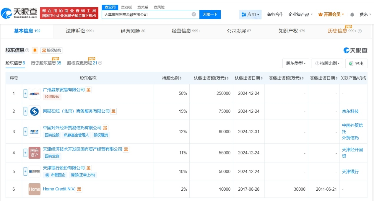 天津京東消費金融有限公司發生工商變更,Vladimir Nyc卸任董事長,由李波接任,同時多位高管發生變更