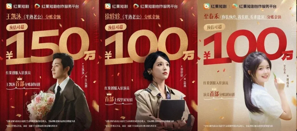 紅果今年對行業的重大影響之二,是分賬機制。2025年8月,紅果短劇升級劇本合作政策,評級最高的保底稿費從12萬元上升至20萬元,分成從20%升至40%。9月4日,紅果推出了「演員合作計劃」,瞄準了短劇產業鏈的演員經紀業務。在紅果創作者大會上,紅果自制劇升級為短劇創作服務平台,開放編劇入駐。11月20日首次公開數據顯示,王凱沐、徐軫軫、至春禾三位演員獲得了百萬+分賬。2025年10月平台總分賬突破7300萬。