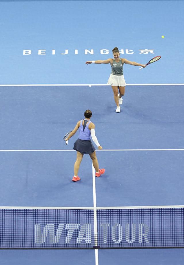 2025年10月5日,在北京舉行的2025中國網球公開賽女子雙打決賽中,意大利組合埃拉尼/保利尼2比1戰勝加藤未唯(日本)/斯朵拉(匈牙利)組合,奪得冠軍。 新華社記者 白雪飛 攝