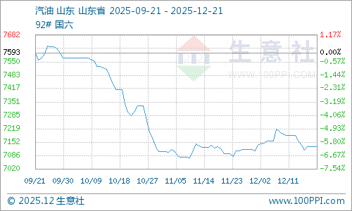 進入本輪計價週期,國際油價行情走勢下滑,截止19日,美國WTI原油期貨2月合約結算價報56.52美元/桶,布倫特原油期貨2月合約結算價報60.47美元/桶。本輪調價週期內,原油價格行情整體走低,本週期初地區局勢有所緩和,地緣局勢風險溢價消退,加之美國需求減弱,美國關稅問題拖累全球經濟和需求預期,導致國際油價行情走勢下滑,後期雖然委內瑞拉地緣局勢緊張致使原油走勢上漲,但是整體來看原油仍呈現下滑趨勢。截止22日,第十個工作日原油品種變化率為-3.51%,對應國內油價每噸汽油下調170元,每噸柴油下調165元,摺合每升下調89#0.12元、92#0.13元、95#0.14元、0#0.14元。
