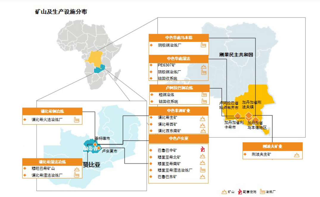 作為礦業全球化的先行者,中國有色礦業的海外業務已遍佈80多個國家,涉及40多個有色金屬品種,在境外投資建設並運營着9座礦山、9座冶煉廠,打造了多個標誌性海外項目,形成了覆蓋非洲、亞洲等核心資源區域的全球佈局網絡。