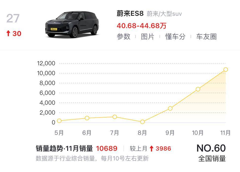 同樣 8.8 分的蔚來全新 ES8 也是這種情況。雖然有老哥給它扣了個「背刺之王」的帽子,但只要降了價,這就是頂中頂。現實裏的金主們也是這麼想的,全新 ES8 只用了 70 天就達成了第 2 萬台新車的交付,刷新了 40 萬元以上純電車型最快達成這一紀錄的速度。