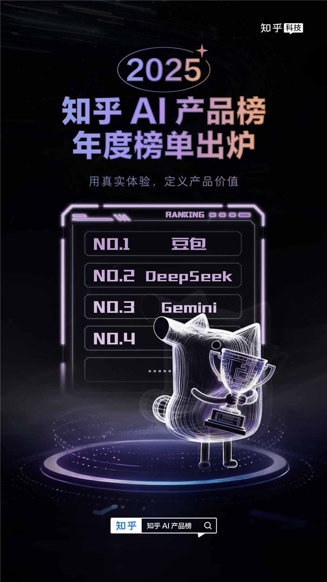 豆包、DeepSeek、千問、ChatGPT……入選知乎2025年度AI排行榜