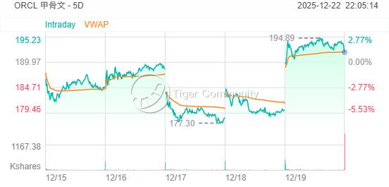 截至2025年12月21日,甲骨文股價收於190美元左右。富國銀行的最新預估暗示其潛在目標價可達285美元。