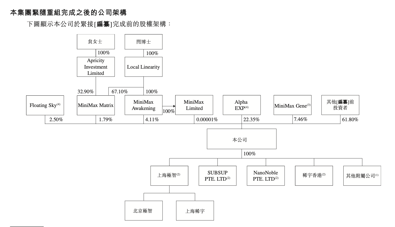 MiniMax在IPO前共完成了7輪孖展,累計籌資約15.56億美元,最後一輪投後估值為42.4億美元。截至最後實際可行日期,閆俊傑通過其控制的實體合計持股超28%,執行董事、首席運營官貟燁禕間接持股2.5%。此外,阿里巴巴持股13.66%、米哈遊持股6.4%、IDG持股2.8%、騰訊持股2.58%。