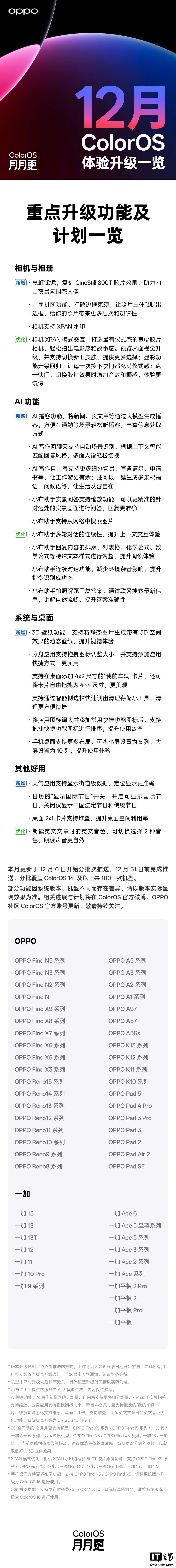 另外,升級至 ColorOS 16 的手機影像玩法也全面升級,帶來了出圈實況拼圖、全新哈蘇 XPAN / 800T 濾鏡、3D 壁紙等功能。ColorOS 16 本月體驗升級一覽如下: