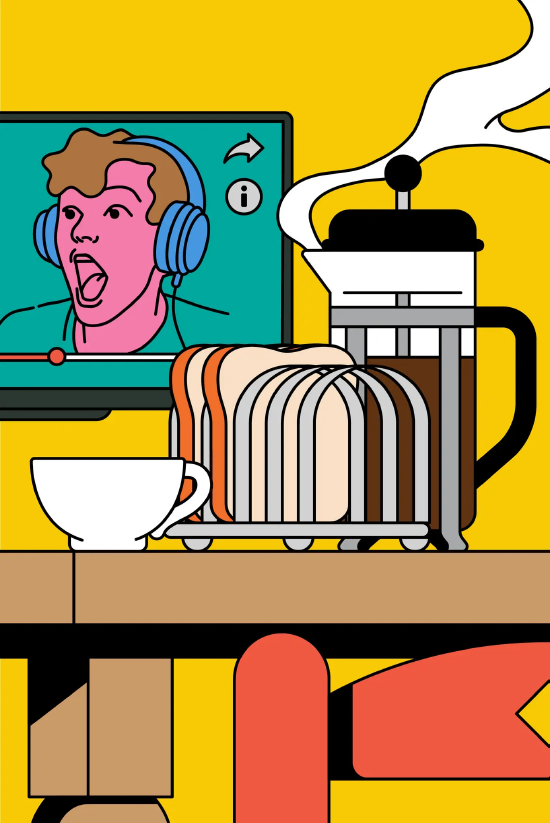 準備早餐時,凌太太和丈夫會點播前一晚斯蒂芬・科爾伯特或塞斯・梅耶斯的脫口秀獨白。丈夫出門上班後,她會播放舒緩的背景音輔助冥想。到了下午,她會一邊鍛鍊一邊觀看騎行相關視頻;傍晚做飯時,則會切換到當地新聞媒體的YouTube頻道。
