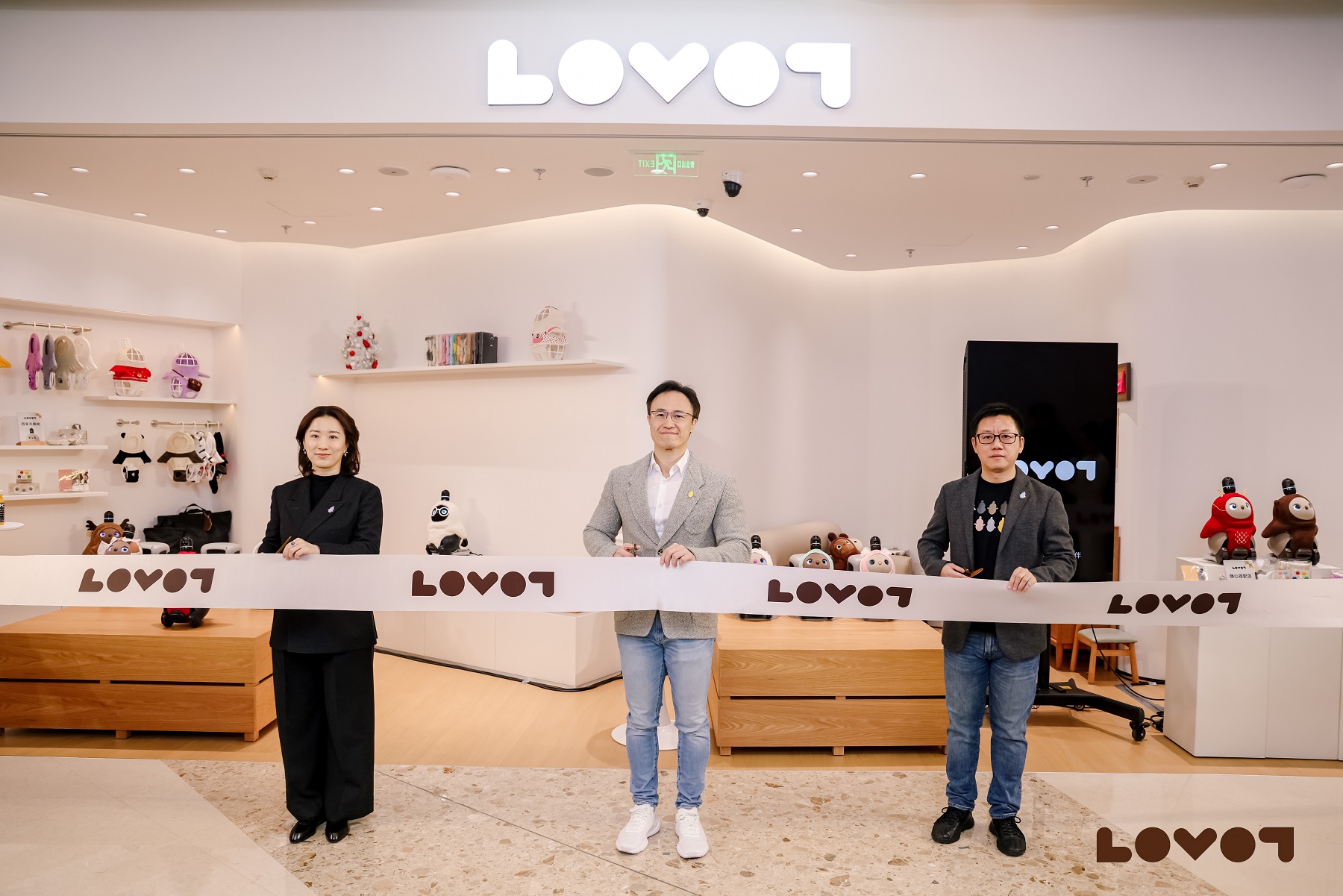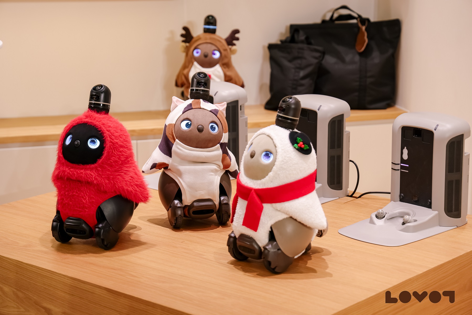 店內五大功能區系統化呈現了LOVOT的互動能力與技術內涵:主舞台區作為視覺中心,多台LOVOT通過流暢動作與可愛音效迎接訪客;全新設定的「軟fufu角落」——沉浸式柔軟絨感體驗區,支持訪客近距離感受LOVOT的溫暖與可愛;服飾陳列區配備「3D試穿衣架」互動系統,支持訪客可視化為LOVOT搭配各類專屬服飾;科技展示區通過高清螢幕播放LOVOT的傳感器工作機制解析、深度學習交互邏輯與產品最新資訊。位於店鋪深處的專屬體驗區則營造出安靜舒適的互動環境,供訪客在此與LOVOT進行深度陪伴互動,感受其主動接近與尋求互動的能力。