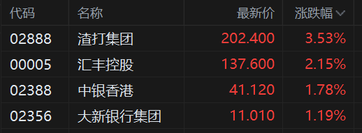 2月3日,香港本地銀行股集體拉升上漲,其中,渣打集團、滙豐控股齊創新高,分別上漲3.5%及2.2%,中銀香港漲約2%,大新銀行集團升逾1%。