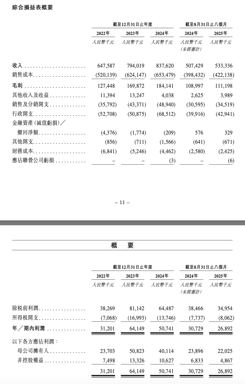 據招股書,2022年-2024年及2025年前8個月,優樂賽共享實現收入分別為6.48億元、7.94億元、8.38億元、5.33億元;年/期內利潤分別為3120.1萬元、6414.9萬元、5074.1萬元、2689.2萬元。