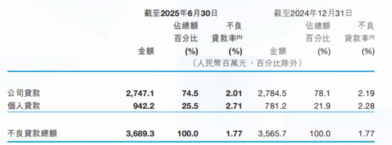 可以看到,晉商銀行個人貸款不良貸款率由截至2024年12月31日的2.28%上升至截至2025年6月30日的2.71%。