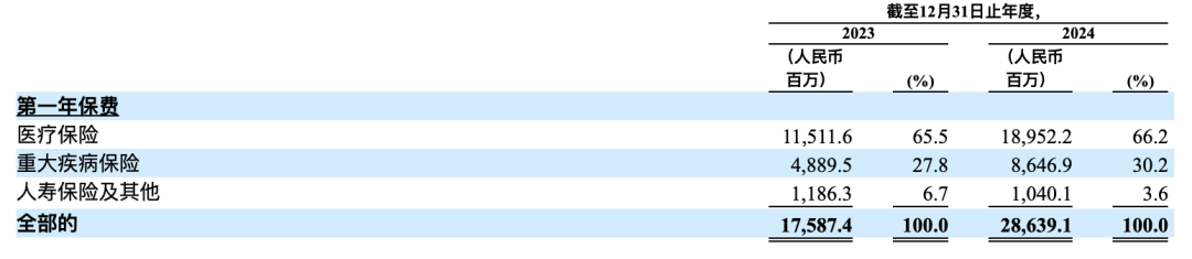 與此同時,元保能夠在短時間內快速提升保單交易量,還與其產品結構密切相關。招股書顯示,元保分銷的保險產品中,99%以上為中短期險,主要以醫療險和重疾險為主。這類產品保費門檻低、決策周期短、復購頻率高,天然適合互聯網流量轉化,也是其新保單持續增長的另一引擎。