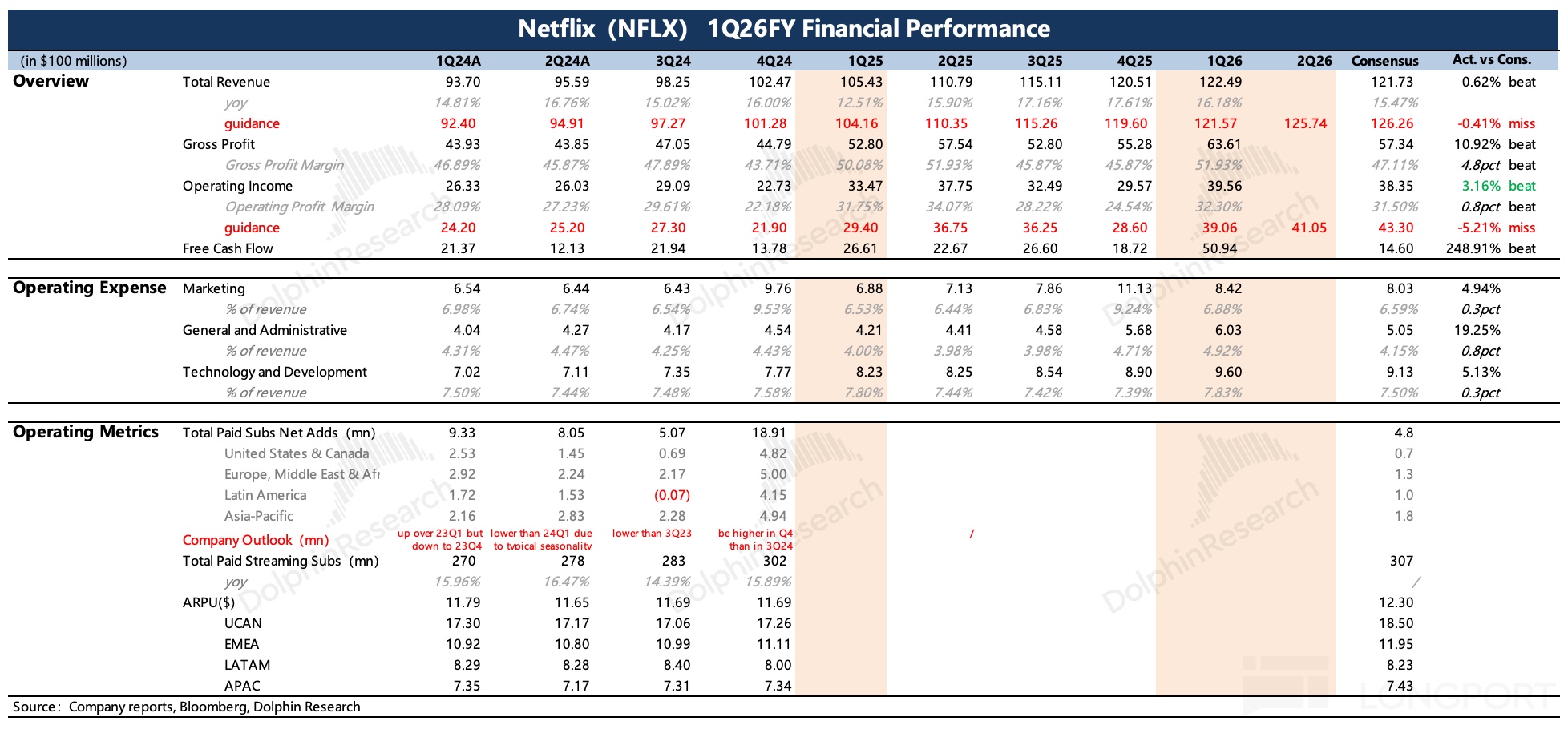 2. M&A 相關費用:年初預期 2.75 億美元 M&A 費用(含 InterPositive 收購及華納兄弟交易),雖放棄 WB 交易,但部分原計劃於 2027 年發生的成本被提前至 2026 年,總額與原預算基本持平,對運營利潤率無實質影響。