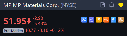 U.S. rare earths company MP Materials said its third-quarter loss widened as it stopped sales to Chinese customers as part of an agreement with the U.S. government, although the results surpassed Wall Street expectations. The shares fell 6.1%.