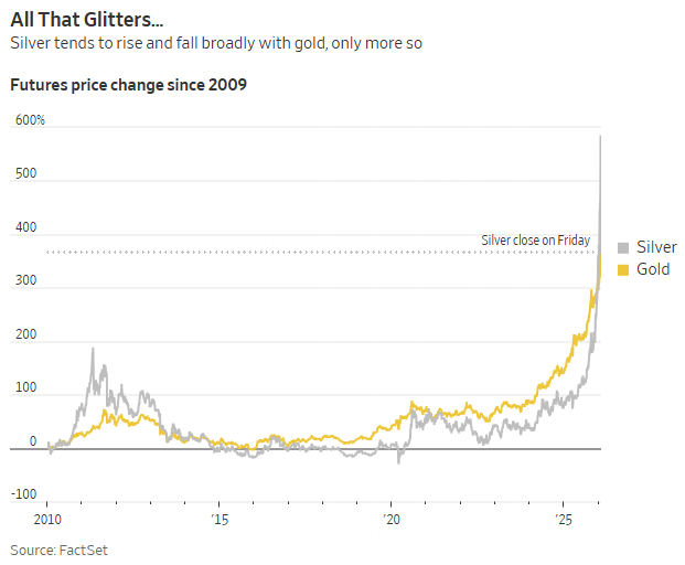 Friday’s plunge in gold and full-blown crash in silver prices support the idea that investors were worried about debasement. The drops came as President Trump chose Kevin Warsh to chair the Federal Reserve. He is seen as less likely to slash rates than the other Kevin in the running, Kevin Hassett.