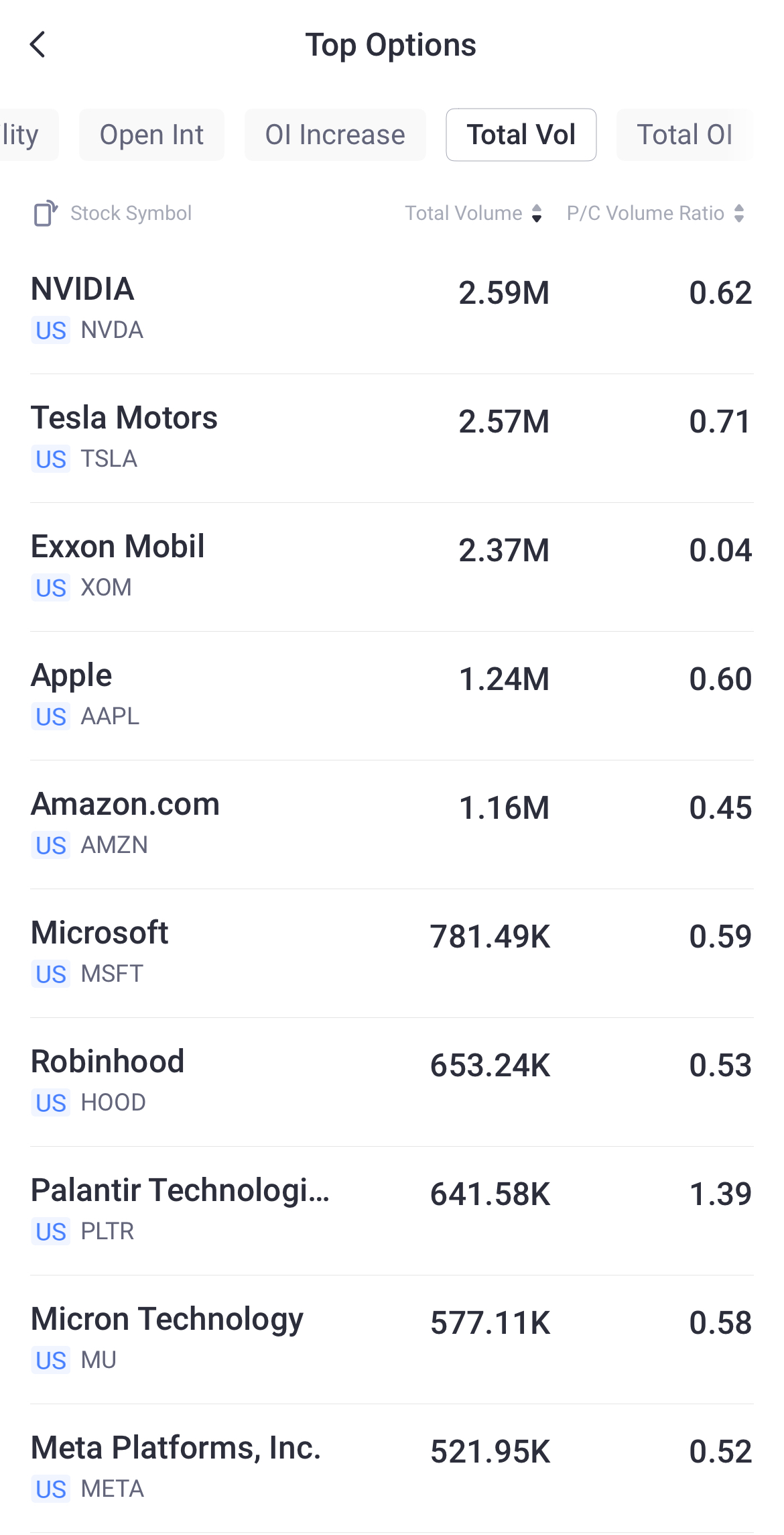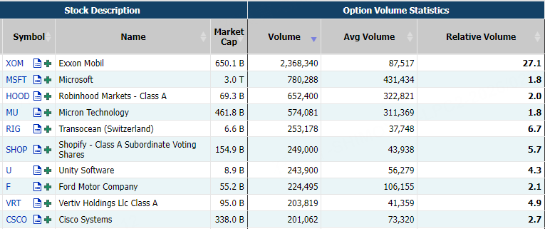 Top 10: NVDA, TSLA, XOM, AAPL, AMZN, MSFT, HOOD, PLTR, MU, META