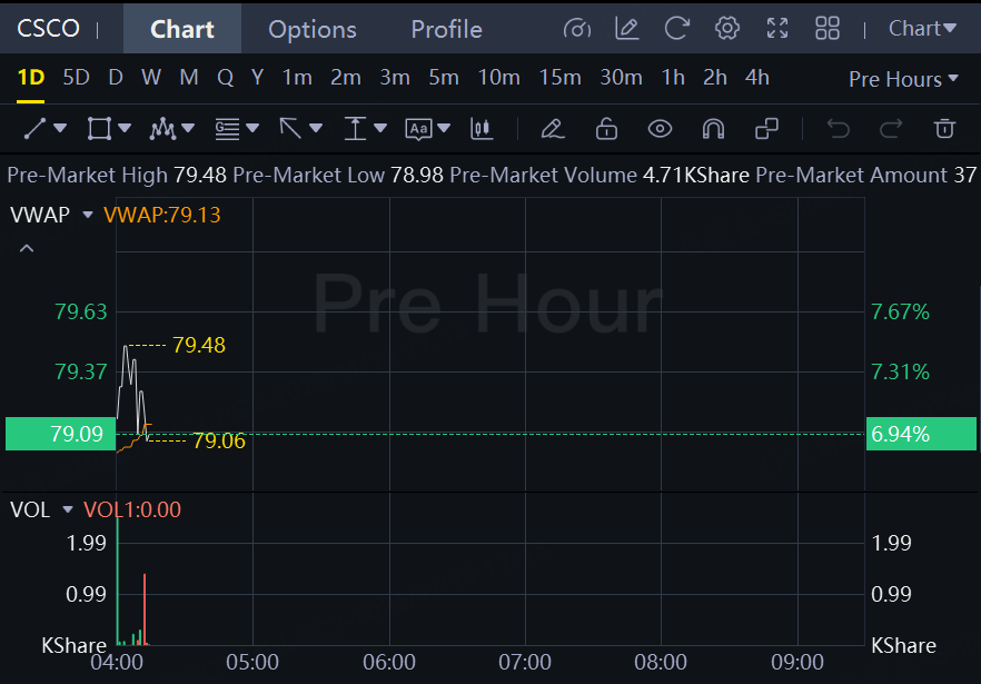 Cisco Systems shares were up 7% in premarket trading on Thursday, after the company raised full-year forecasts for profit and revenue.