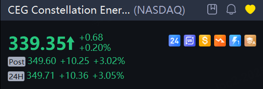 The Trump administration said on Tuesday it has loaned Constellation Energy $1 billion to restart its nuclear reactor at a Pennsylvania plant formerly known as Three Mile Island. The shares gained 3.1% in overnight trading.