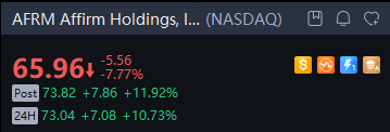 Affirm Holdings, Inc. shares advanced 11% in overnight trading after upwardly revising its guidance for fiscal-year 2026 gross merchandise volume after delivering a double-beat on Q1 earnings and revenue.