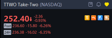 Shares of Take-Two sank 6% in overnight trading after Rockstar Games announced a further delay in the release of Grand Theft Auto VI to November 2026.