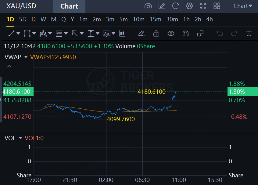 Spot Gold Rises Above $4,180/Oz. Gold Stocks Jump With Harmony Gold, Anglogold up Around 5%; Barrick Mining up over 4%; Newmont Mining up over 3%