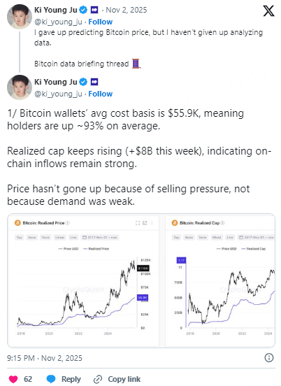 While hashrate remains at record highs and on-chain realized value continues to grow, Ju notes that price performance now depends heavily on whether ETF and institutional inflows re-accelerate, making traditional cycle-based predictions less reliable.